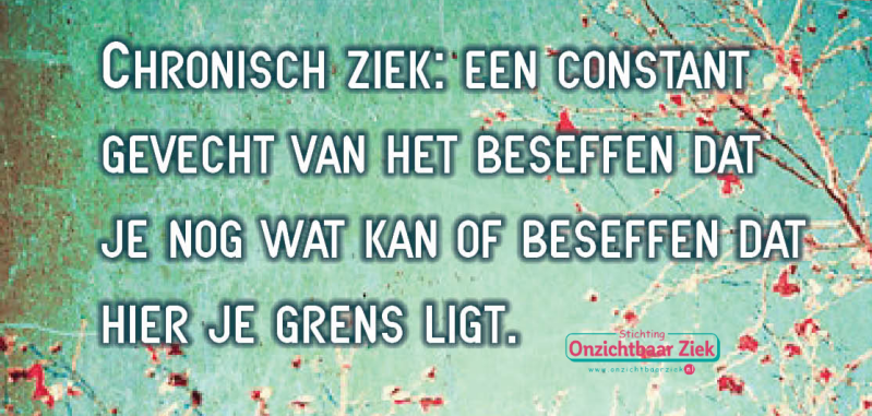 Daarnaast vergt het ongelooflijk veel als je continue je planning moet bijstellen aan je aandoening(en). Ben je net weer ingesteld op wat je nog aankunt, ga je weer een stapje achteruit waardoor je weer van voor af aan kan beginnen en alles wat je nog wél lukt moet gaan aanpassen.