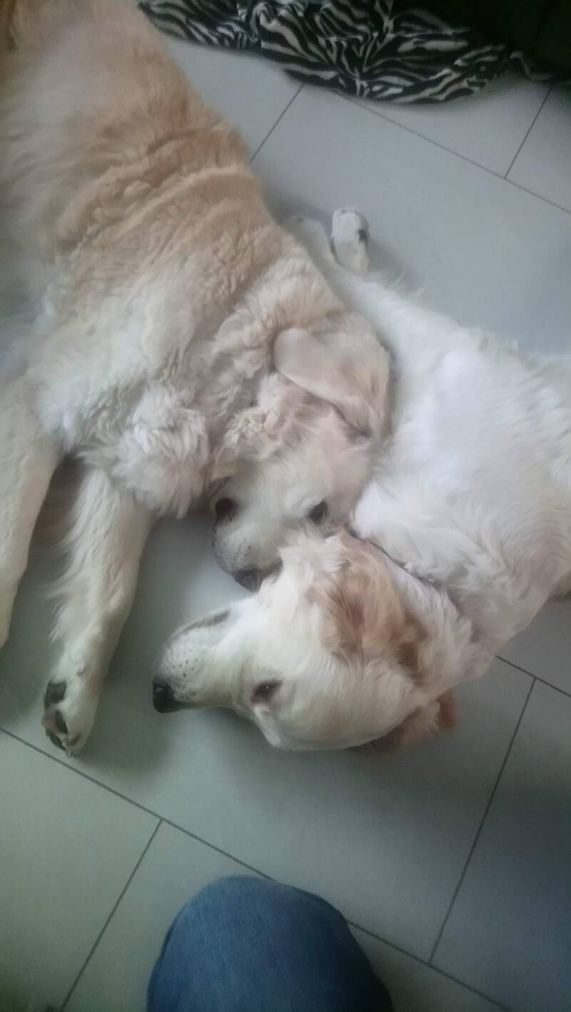 Baloo en Joyca die tegen elkaar aan liggen uit te rusten