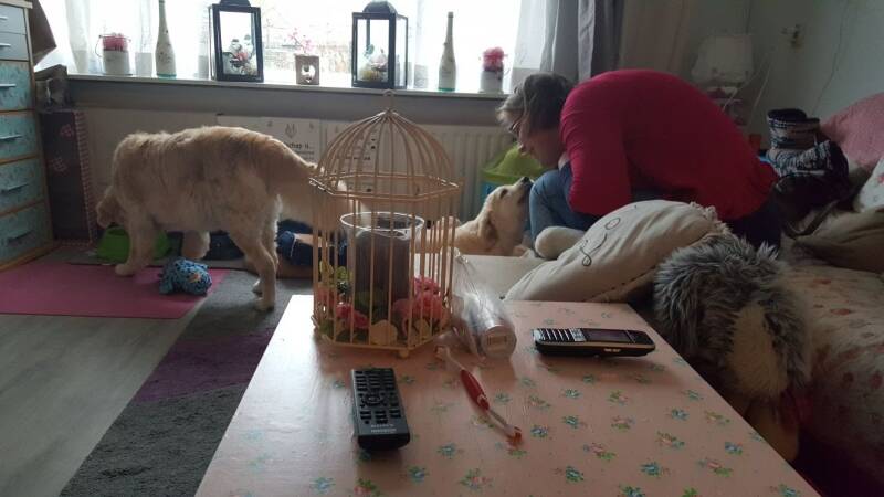 En uiteindelijk vond hij het juist wel fijn om in zijn eentje thuis te kunnen zijn. Hij ging dan lekker liggen slapen en begroette ons weer zodra we thuiskwamen. Hij had dan weer voldoende energie om met Joyca te spelen wanneer deze even uitgerust en geslapen had.