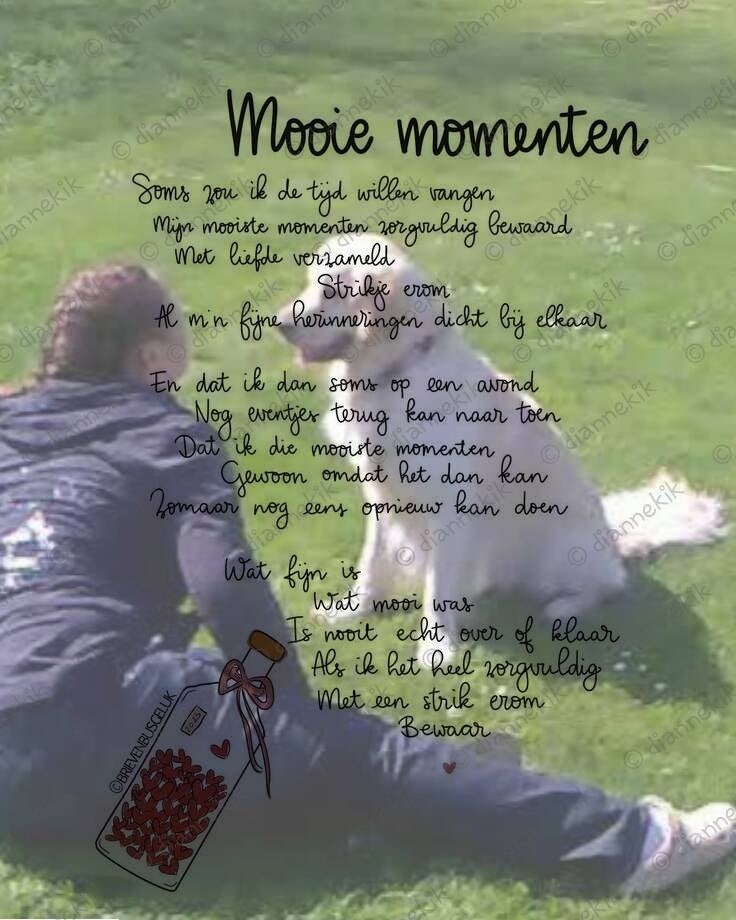 Toch kan ik nu ook steeds vaker de mooie en fijne herinneringen zien die wij samen hebben gemaakt. En kan ik zomaar ineens om jou lachen wanneer er weer een ondeugende streek te binnenschiet die jij uitgehaald hebt.
